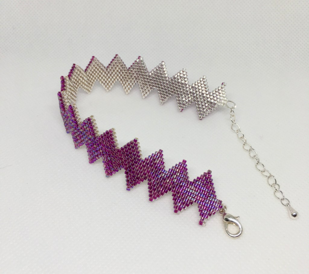 This refers to the type of bead used and makes this like a piece of woven fabric. Fastening with a sliding magnetic clasp.