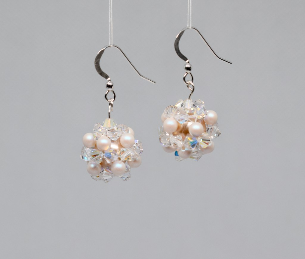 Sparkly crystals with glowing pearls round a base pearl makes these a very festive pair of ear rings.